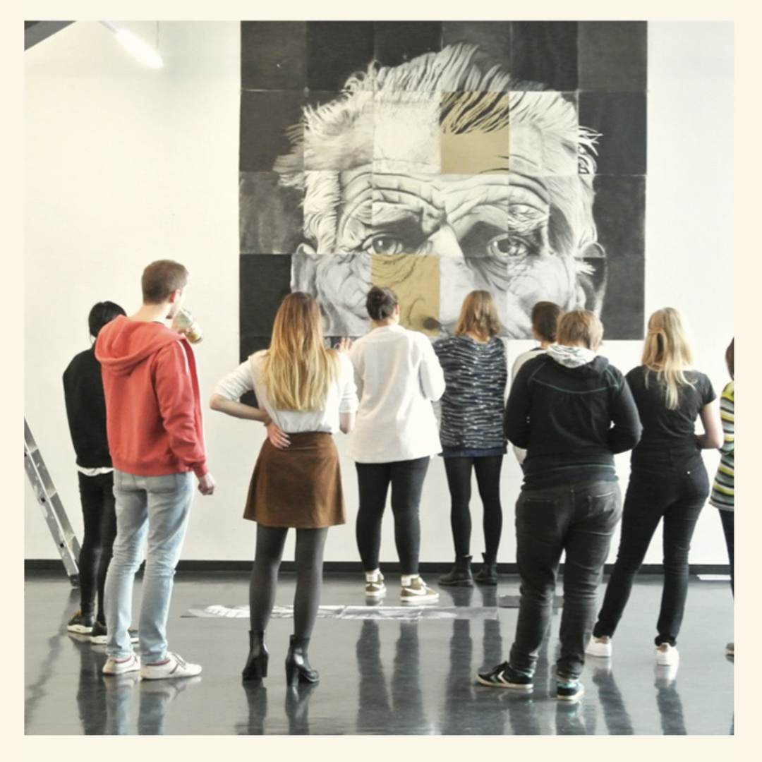 Gegen Ende des Workshops schauen wir nochmal gemeinsam auf die entstandenen Zeichnungen und beenden den Abend stilvoll mit einer kleinen Vernissage. Cheers!